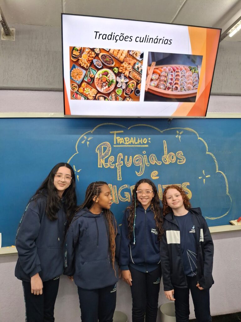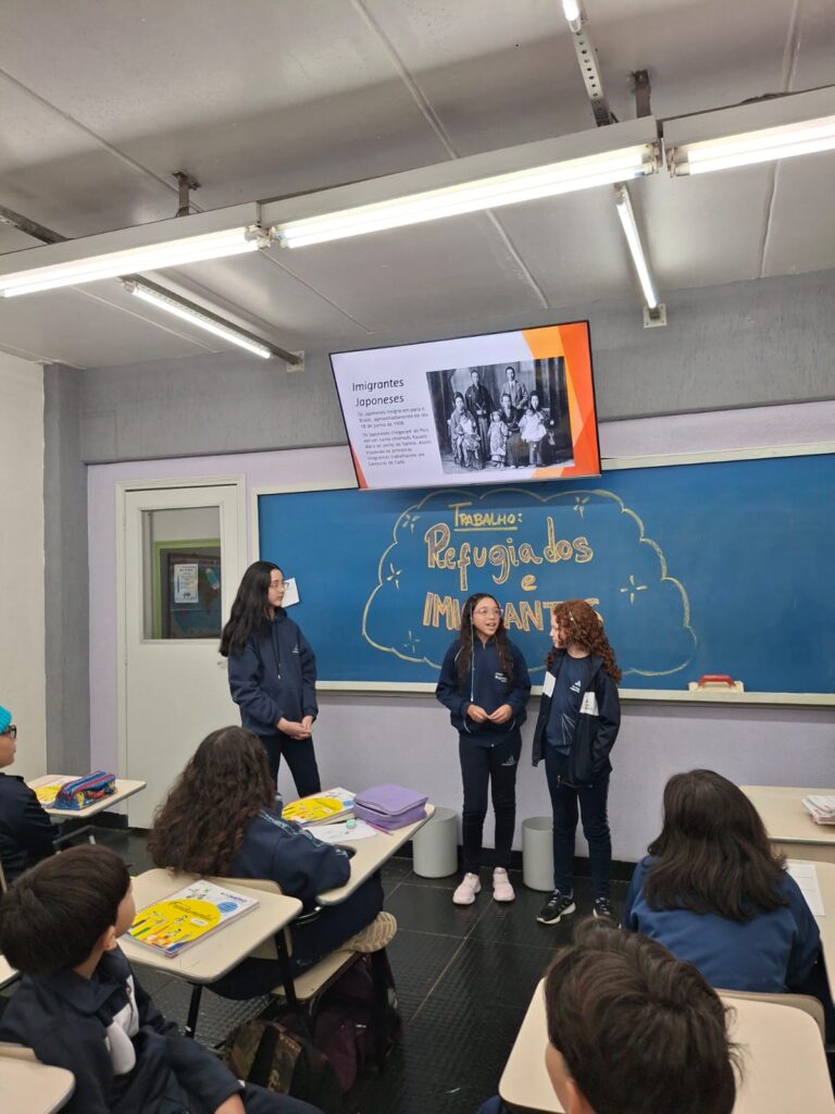 5º ano: Refugiados e Imigrantes 09/09/2025 Adicione o texto do seu título aqui Adicione o texto do seu título aqui Nas aulas de Estudos Sociais, os alunos dos 5ºs anos fizeram um importante trabalho de pesquisa sobre Imigrantes e Refugiados.